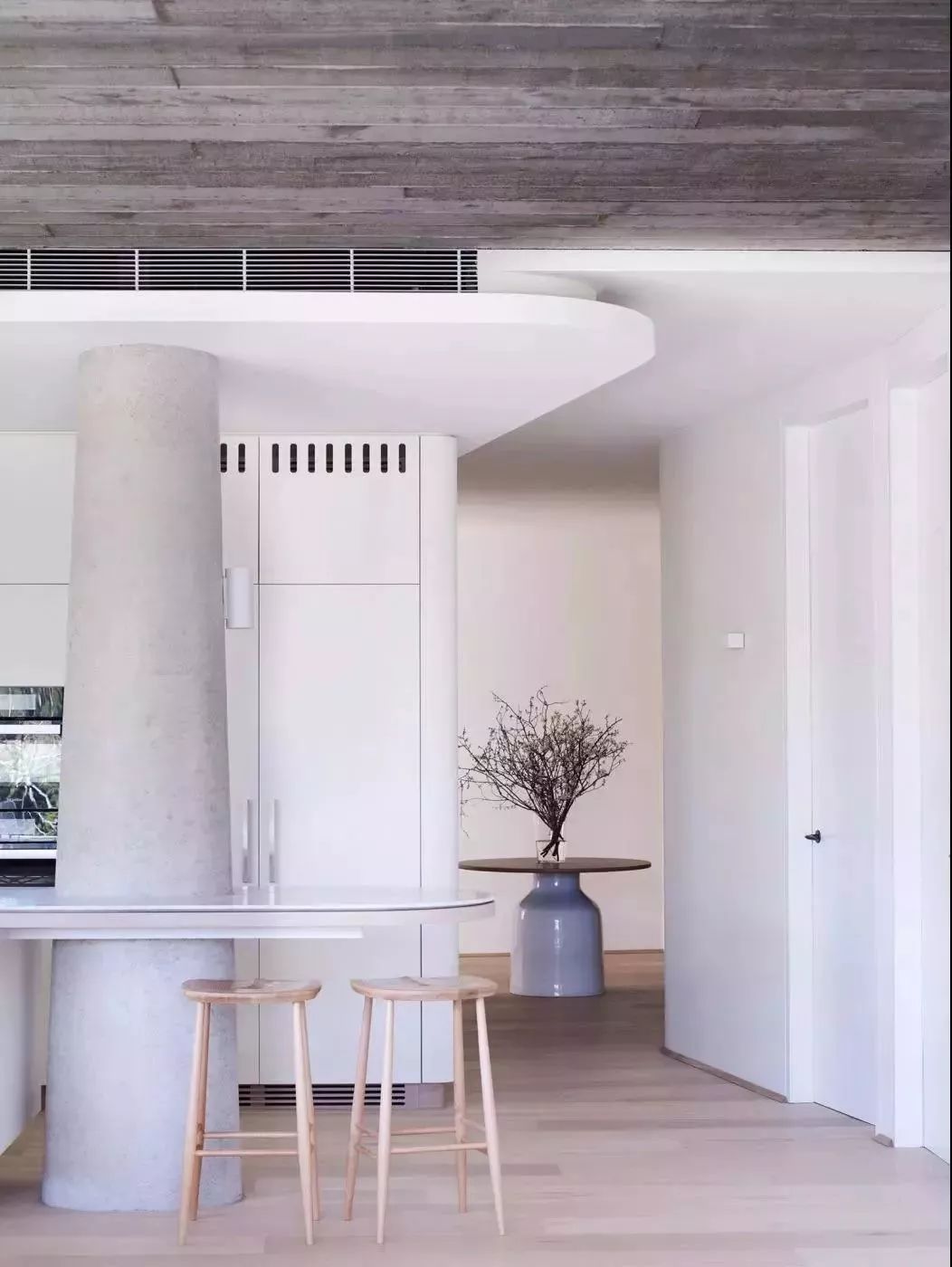 裝飾越多,反而越顯累贅很容易造成一種“泰山壓頂”的感覺像這樣構(gòu)造平整,不事雕琢的設(shè)計反而越能凸顯出極簡的空間魅力。