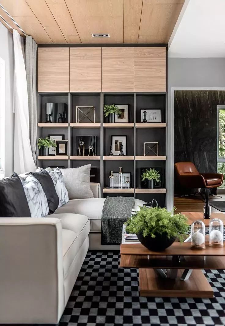 格柵造型的木質(zhì)吊頂,看起來沒有太多復雜的設(shè)計,卻給人一種簡約卻不單調(diào)的視覺呈現(xiàn)。