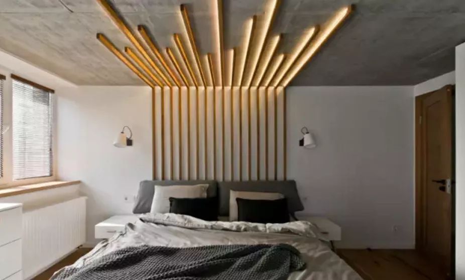 非常有創(chuàng)意的木制吊頂 + 燈帶的設(shè)計