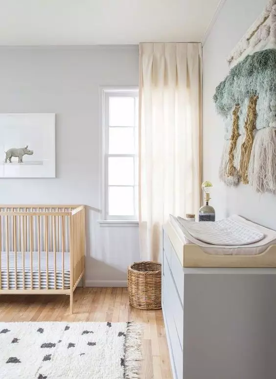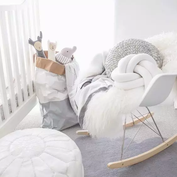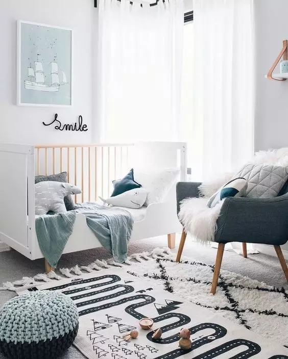 除了墻壁以外,地面也很重要。對(duì)于剛學(xué)會(huì)爬行的BABY來(lái)說(shuō),地面就是他們的樂(lè)園。在房間鋪滿軟綿綿的毛毯,可以防止地板傷害到BABY嬌嫩的肌膚。因?yàn)槭荁ABY用的,所以材質(zhì)和定期清潔很重要。不想大面積鋪地毯鋪小部分面積也可以。高度尷尬的椅子容易BABY容易撞到頭,最好撤掉,不過(guò)圖中椅子的坐墊部分是軟的。覺(jué)得地毯不好打理的,可以買(mǎi)泡沫軟墊。同樣也能防止地板硬硬的撞到BABY的頭。但是要注意不要買(mǎi)到氣味重的,對(duì)身體不好。
