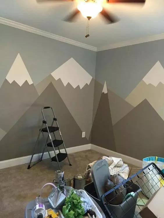 仿造大自然景觀做出來(lái)的背景墻,也是可以用墻漆、丙烯顏料做到。