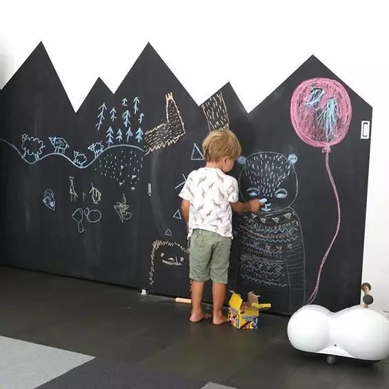 到一定的年齡孩子們就會(huì)開(kāi)始瘋狂的藝術(shù)創(chuàng)想,他們最大的畫(huà)紙就是家里的白墻。阻止也不是,不阻止也不是。那就在他的房間里設(shè)一面涂鴉墻吧。可以用水性黑板漆。只需要正確的指導(dǎo)他們?cè)谕窟^(guò)黑板漆的地方畫(huà)畫(huà)就可以了。墻壁也一般畫(huà)紙大不說(shuō),還可以無(wú)限次的重畫(huà)。