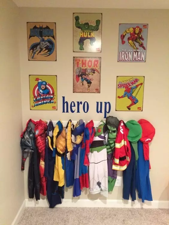 化妝舞會(huì)的衣服可以這樣掛在墻面上。今天是馬里奧,明天是綠巨人,后天是鋼鐵俠。