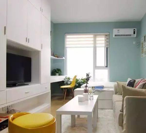 空間面積小,那么就多想想利用一下墻面空間,電視直接掛壁,這樣就省去了電視柜占用空間,墻壁上設(shè)計(jì)壁龕、嵌入式收納格檔,就能可以多收納些小物件,增加空間的利用率。
