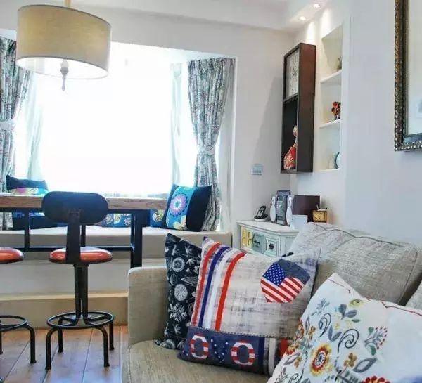客廳的陽臺(tái)雖然不大,但是巧妙的利用起來設(shè)計(jì)成榻榻米,你就會(huì)發(fā)現(xiàn)收納容量大了很多,榻榻米下可以做收納區(qū),榻榻米上方可以做休閑區(qū)或者小書房,是多功能型的。