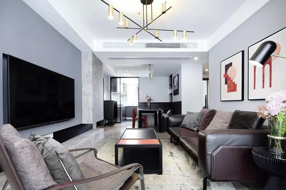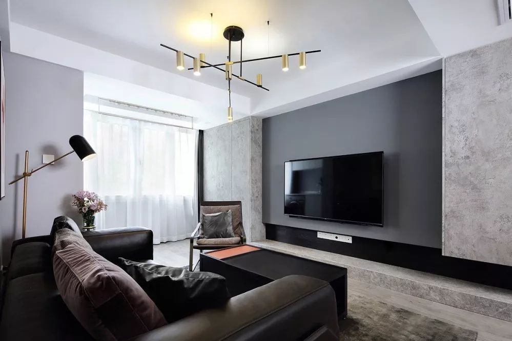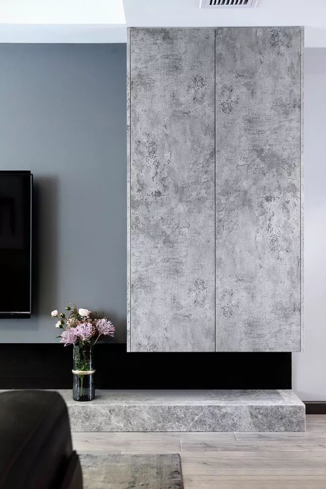 ▲ 電視背景墻原始而細(xì)膩,高冷而粗獷,輔以自帶高級(jí)感的金屬元素,給家居空間帶來(lái)十足的精致氛圍和現(xiàn)代感。