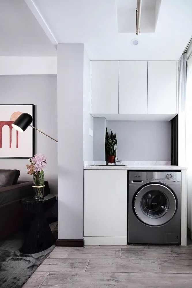 ▲ 定制洗衣柜與陽(yáng)臺(tái)的空間結(jié)構(gòu)無(wú)縫貼合,將空間功能最大化。高柜的設(shè)計(jì)既讓洗衣區(qū)整齊劃一,又增加了儲(chǔ)物空間。
