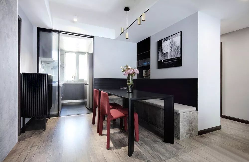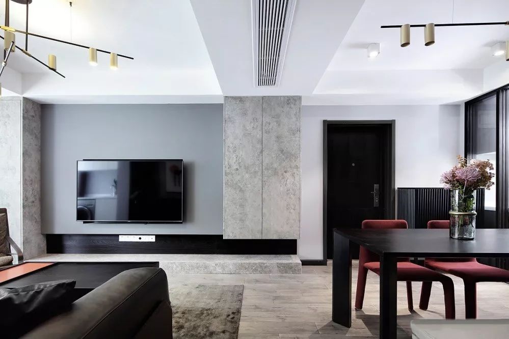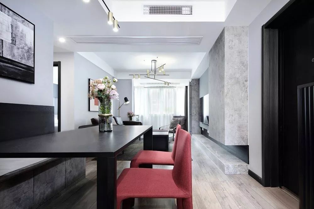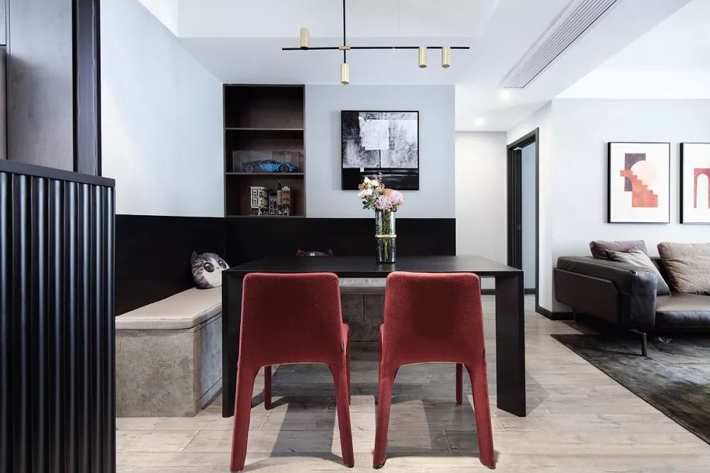 ▲ 低調(diào)內(nèi)斂的高級(jí)灰搭配細(xì)膩精致的質(zhì)感黑,再融入一抹跳脫的紅,打造出時(shí)尚大氣的家居風(fēng)格。