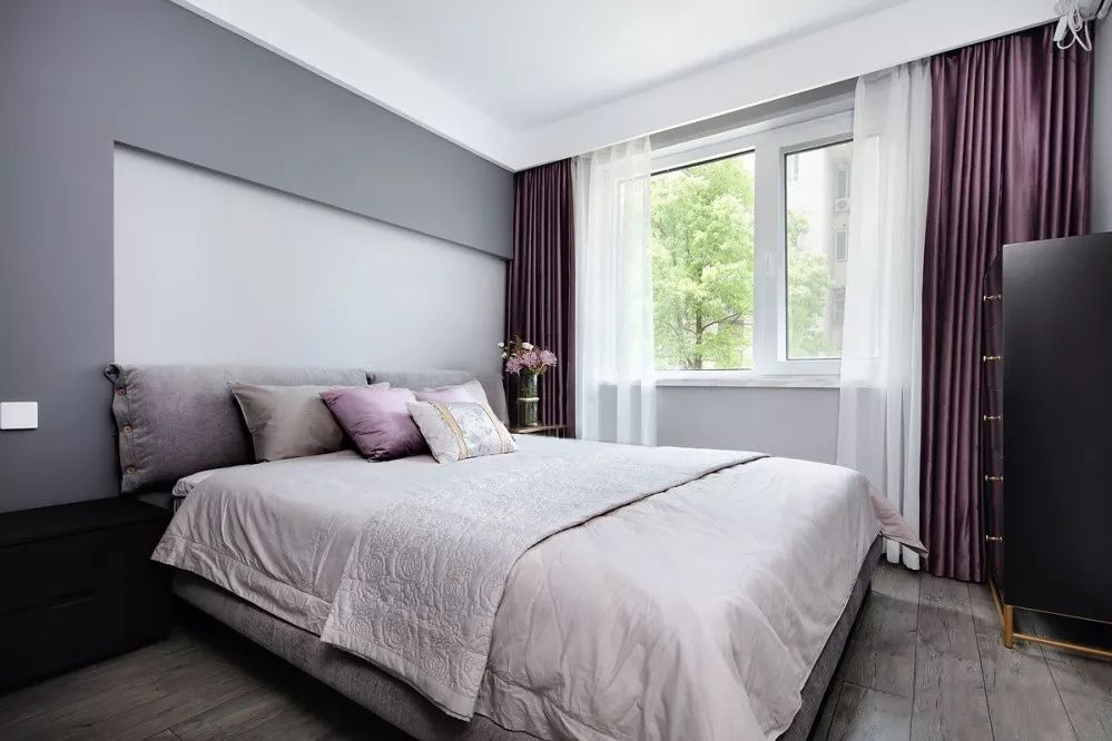 ▲ 紫色的窗簾浪漫而高貴,金色元素點(diǎn)綴其間,細(xì)膩的展示出屋主的優(yōu)雅品調(diào)。