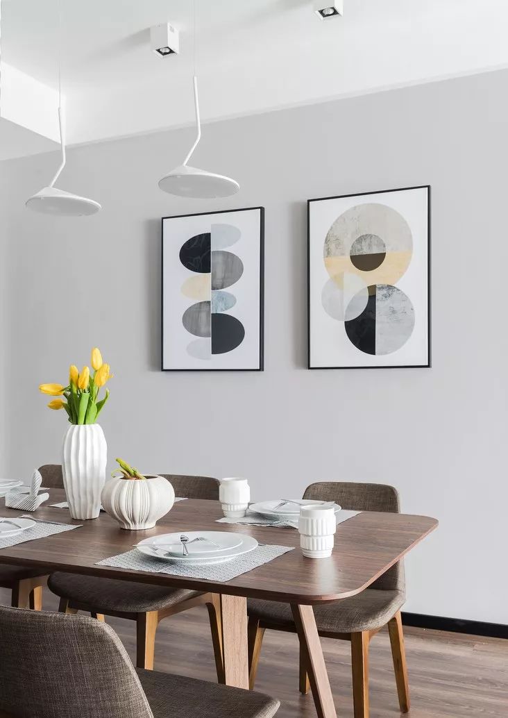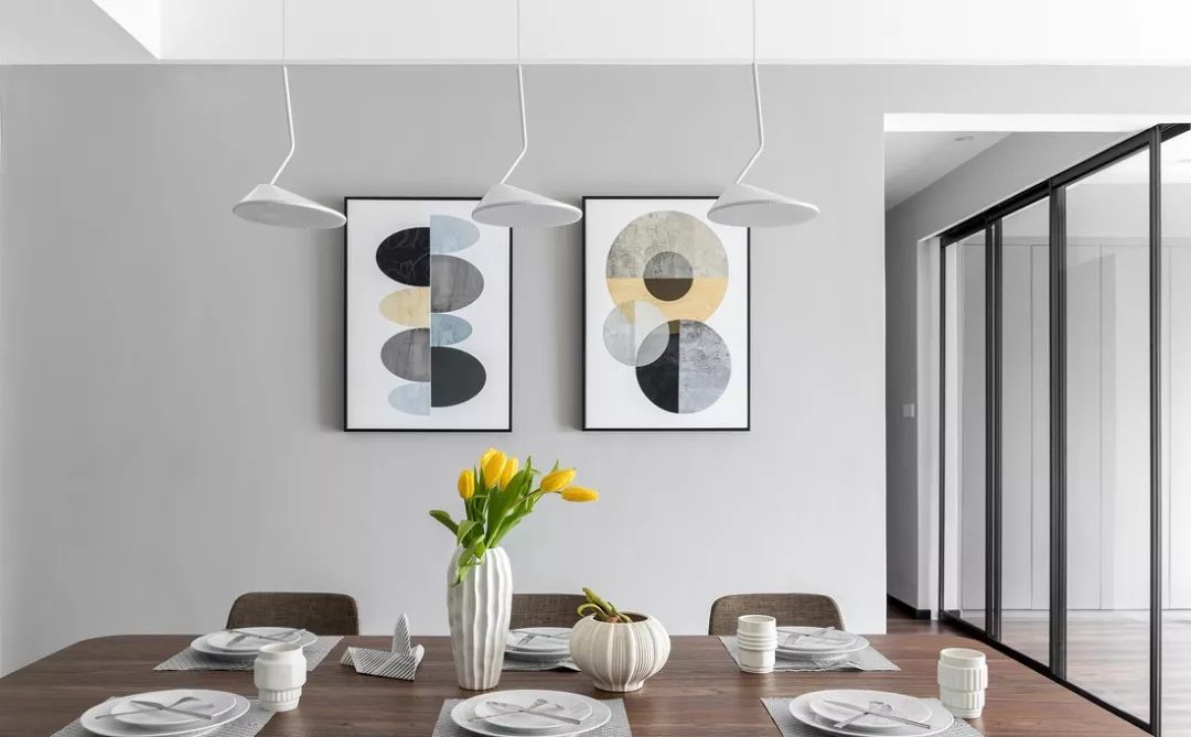 ▲ 餐廳在家具的選擇和氛圍的營(yíng)造上,以彰顯舒適大氣的特質(zhì)為主,利用家具餐具和掛畫(huà),打造了獨(dú)一無(wú)二的餐廳空間。