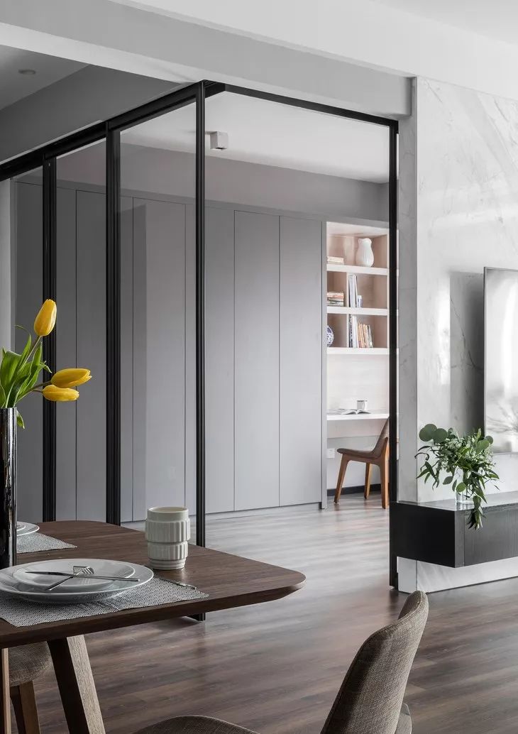 ▲ 將厚重的墻體改成了通透的玻璃,既實(shí)現(xiàn)了空間的視野寬廣,又能形成獨(dú)立私密的書(shū)房。