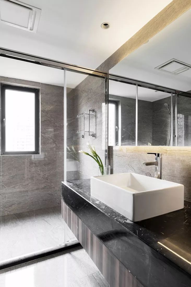 ▲ 衛(wèi)生間的布置更顯簡(jiǎn)潔,憧憬簡(jiǎn)約明亮與現(xiàn)代風(fēng)的工藝質(zhì)感。