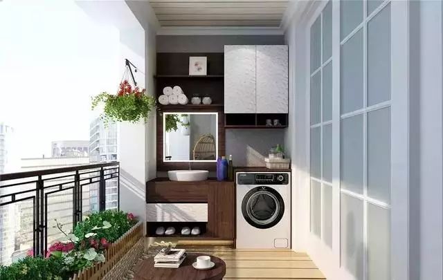 對于小戶型來說,把陽臺柜、手洗盆和洗衣機全部搬到陽臺,才是整整齊齊的“陽臺一家人”,輕松實現(xiàn)洗衣、洗漱、收納三合一。