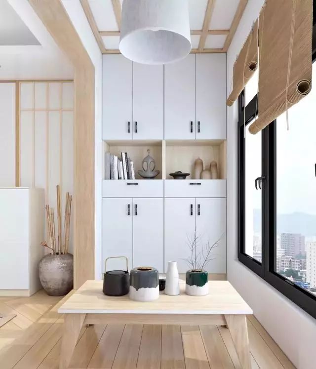 沒錯,一個儲物柜,一個矮桌,幾個蒲團,一個充滿情調(diào)的休閑茶室就誕生了。