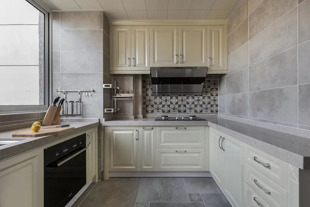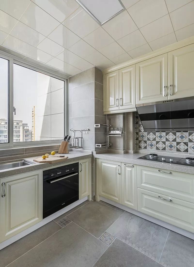 ▲ 顏色也以米灰色墻面襯托珠光白的櫥柜,層次分明,也好打理。