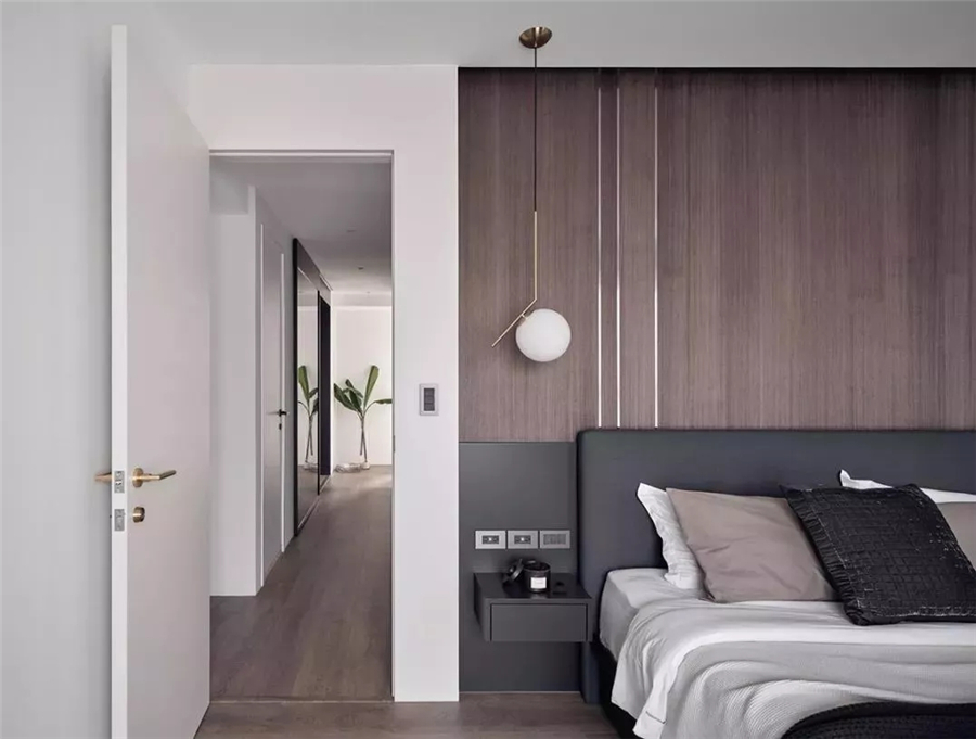 原木質(zhì)感的窄框線,把清新自然和現(xiàn)代建筑融為一體。木紋和窄框線相互襯托,讓房間顯得更有條理。