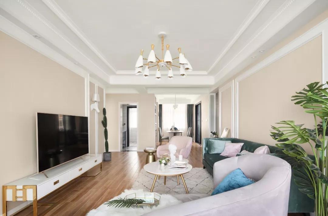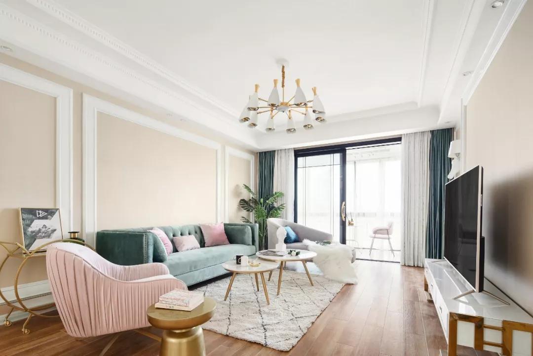 這是一套面積為129平的簡美風格,裝修非常不錯,尤其是在配色方便就拿客廳來說,采用綠色、粉色、金屬色及暖色調(diào)裝飾,非常的漂亮,這樣的一套簡美風格真是顯得格外好看,真的很時尚,下面我們一起來欣賞一下這套案例吧。