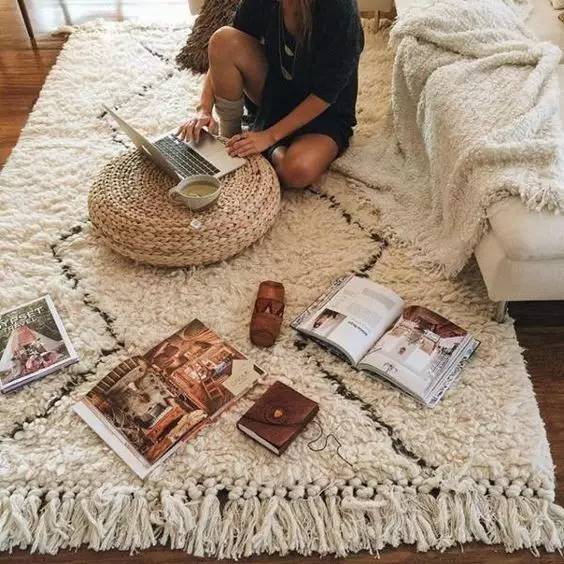 只要你愿意,一張地毯就可以變成一個(gè)工作室。這樣溫暖的地毯,辦公、看書都愿意窩在這里。