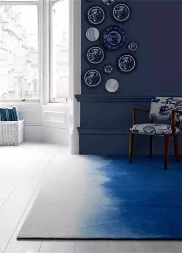 ◆天藍(lán)色地毯與深藍(lán)色墻面與陶瓷裝飾相呼應(yīng),打造通透清澈的效果。
