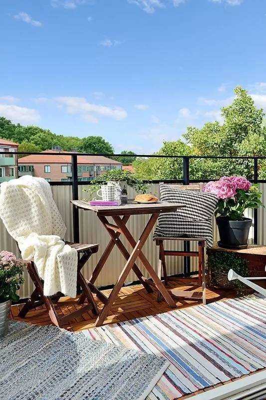 ◆若是把地毯放上了陽臺,陽臺就多了一份舒適、愜意和浪漫。