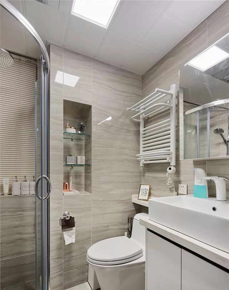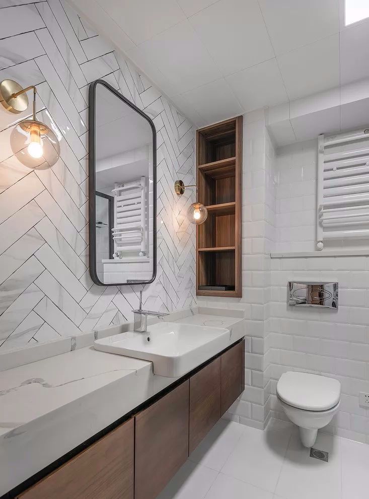 壁龕在衛(wèi)浴間運(yùn)用尤其多,洗浴用品有了容身之處,又省去了收納用具。設(shè)計(jì)時(shí)造型上還可以與墻面融合在一起,作為收納架or收納板,鐵的怕生銹,木的怕掉色,只有壁龕才能拯救潮濕的衛(wèi)生間。