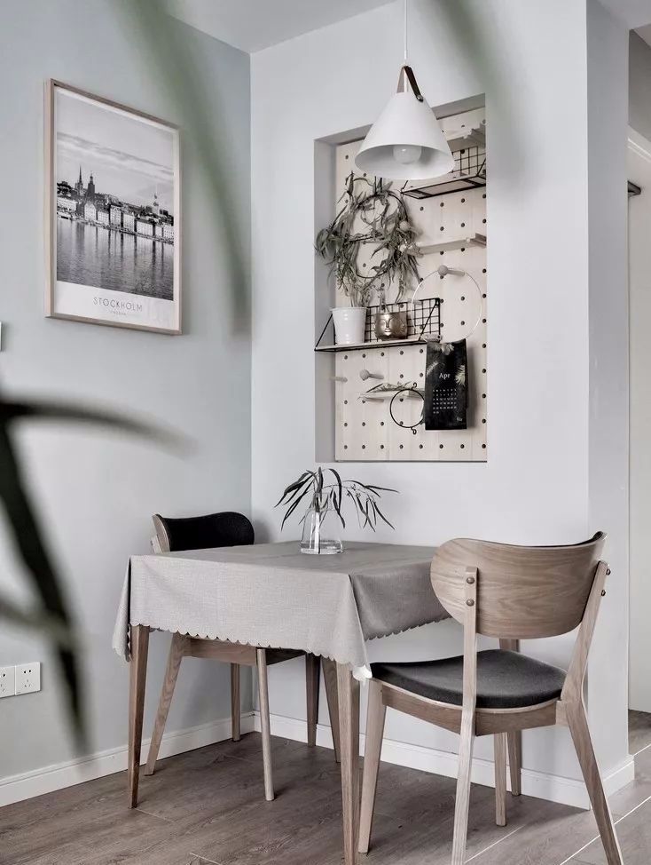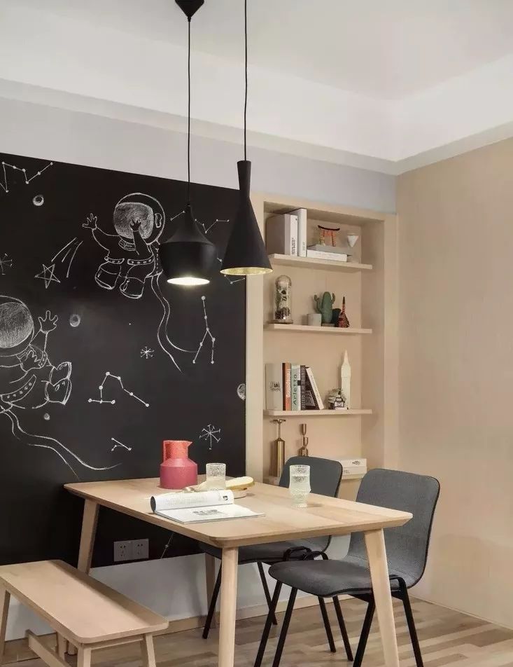 在餐廳附近也可以做一個(gè)壁龕,充當(dāng)餐邊柜,不管是餐具還是擺件都可以放進(jìn)去,節(jié)省空間還有裝飾作用,調(diào)調(diào)一下就上來了。