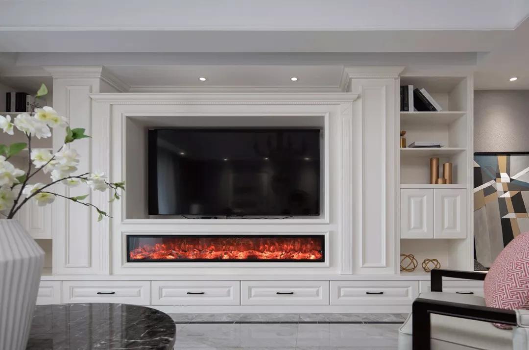 客廳電視背景墻很實用,帶有收納功能,方便用來存儲生活物品,白色的柜子簡潔明亮。
