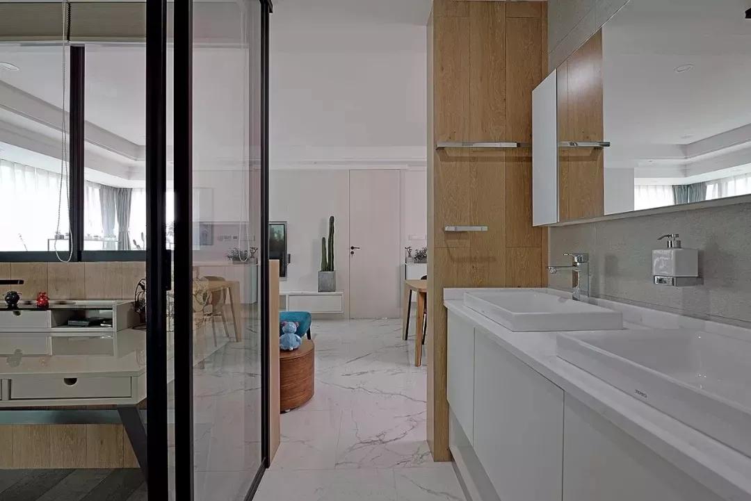 這是一套100平簡約三房裝修,色彩主要以白色、原木色搭配為主,結(jié)合一些裝飾色彩提升室內(nèi)的溫馨感和活力,整體裝修簡約而不簡單,客廳采用玻璃墻當(dāng)隔斷,采光效果真的很好,讓另一個(gè)原本很暗的空間變得更加明亮了,巧妙的玻璃隔斷設(shè)計(jì)很贊。