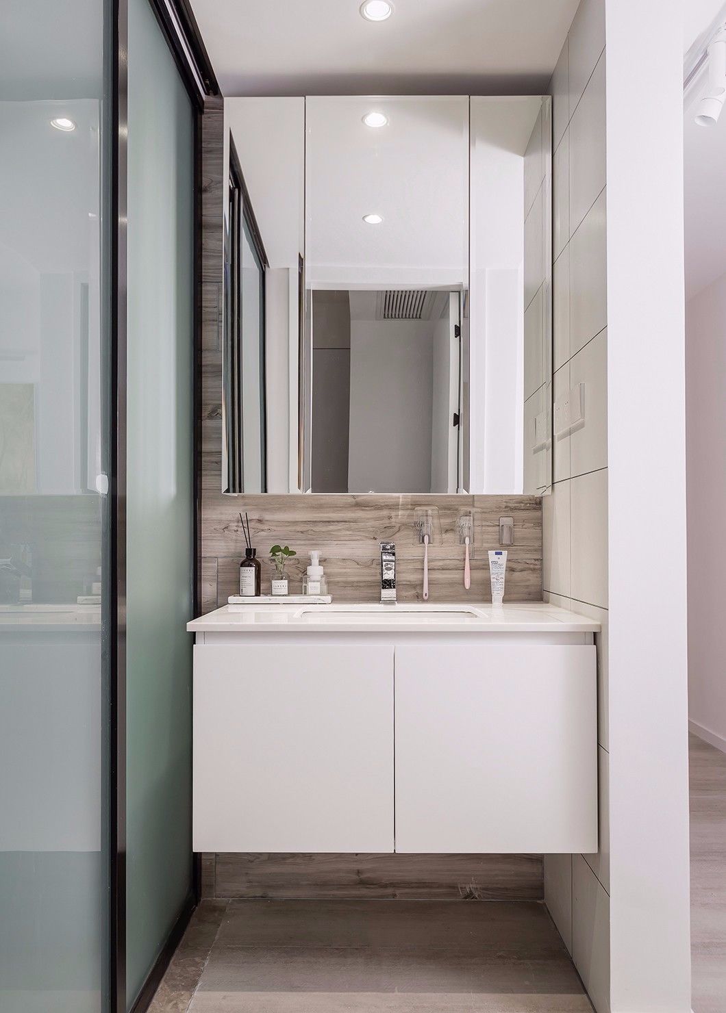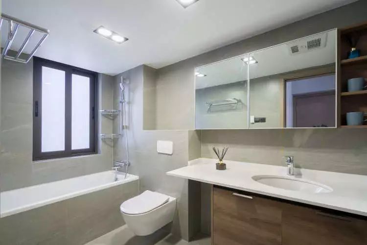 淺木色作為一種自然簡潔的設(shè)計元素,布置在簡約舒適的衛(wèi)生間里,整體風(fēng)格會顯得輕松閑適,適合一些簡約、北歐等風(fēng)格的衛(wèi)生間搭配。