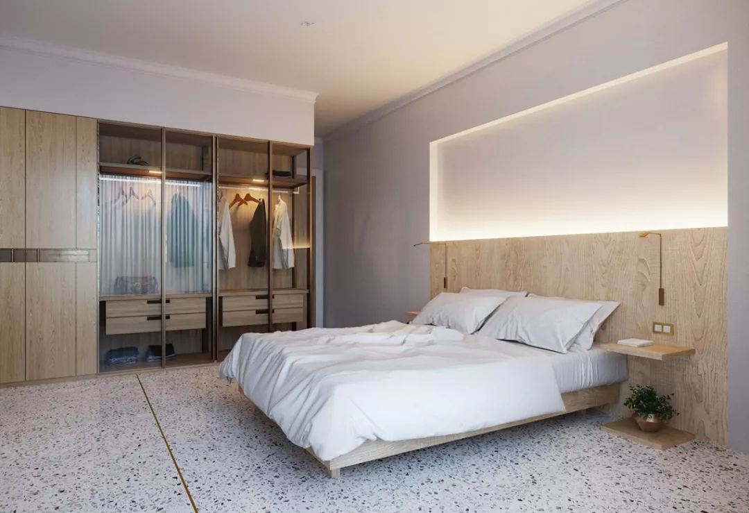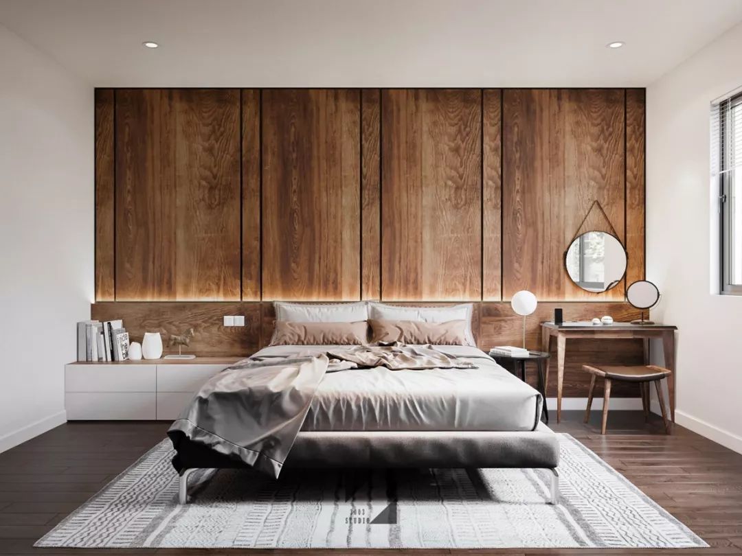 只需在床頭處加入一塊木板,輕松解決床前空蕩蕩、沒特色的難題。在臥室設(shè)計木質(zhì)床屏,既保留了木材的自然元素,又不失靈動的設(shè)計感。完全顛覆傳統(tǒng)床頭、床身分離的情況。