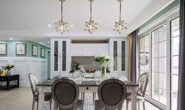 仔細(xì)看餐廳的餐桌椅都是很具美式風(fēng)的,具有古典韻味又有時(shí)尚氣息,而且餐廳的花色地磚又讓這個(gè)餐廳的裝修更顯得別致~
