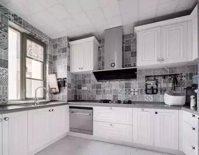 素雅的花色墻磚讓這個(gè)廚房多了一份異域風(fēng)情~