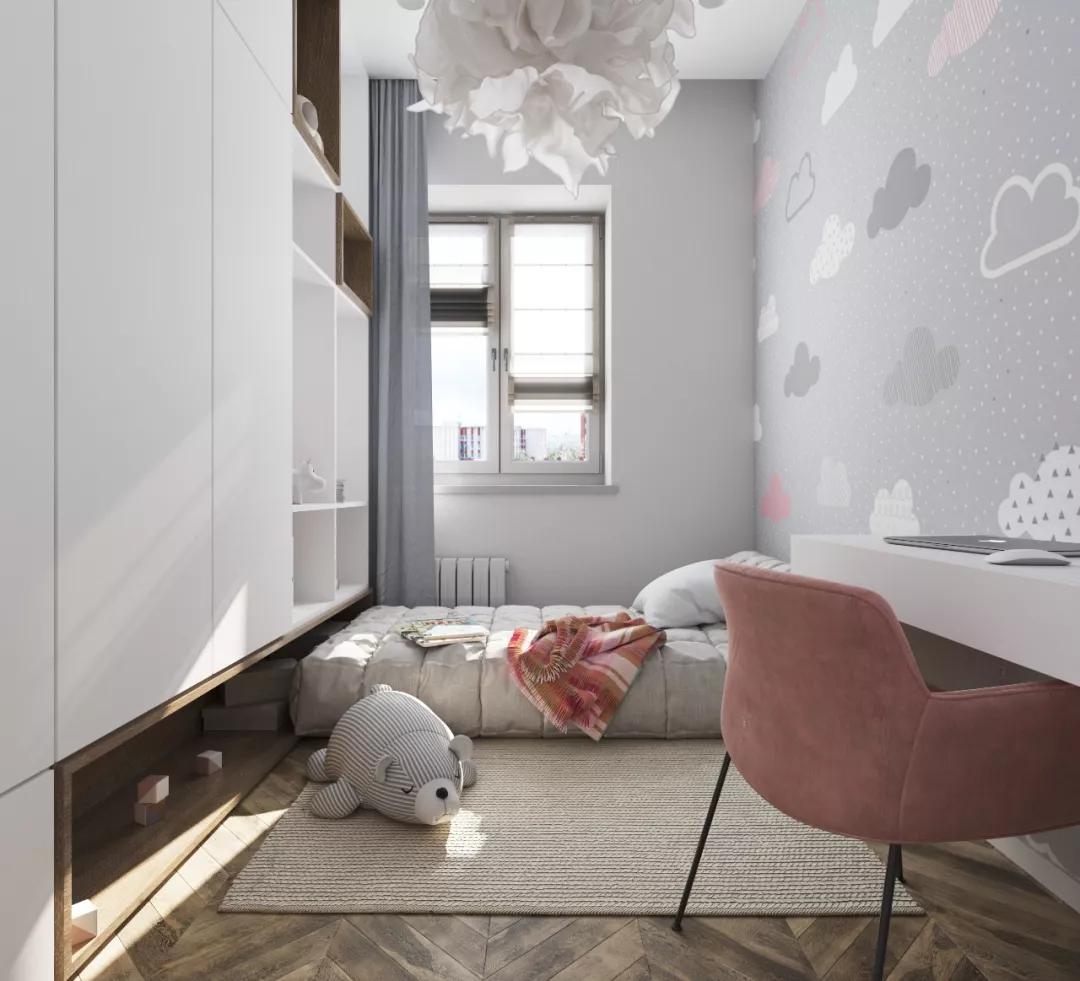第四,收納學(xué)習(xí)兩不誤。面積較小的房間,榻榻米+柜子+書桌結(jié)合的方式最適合;面積大的可以獨立設(shè)計收納和書桌,方便小孩存放玩具、書籍等物品。