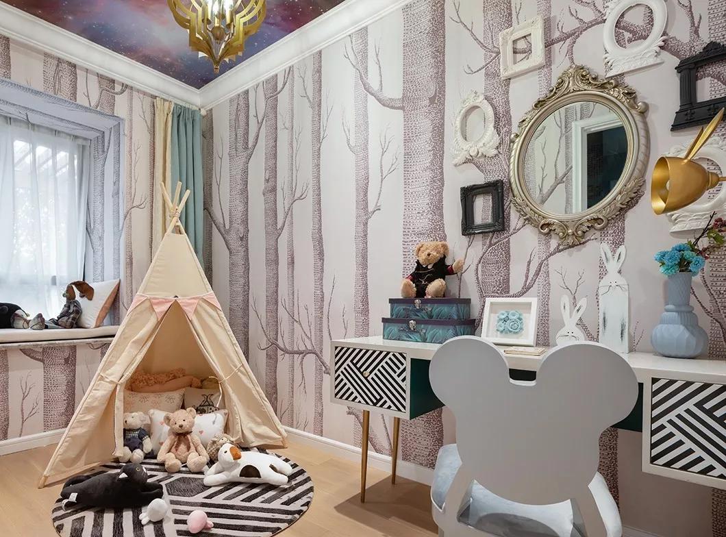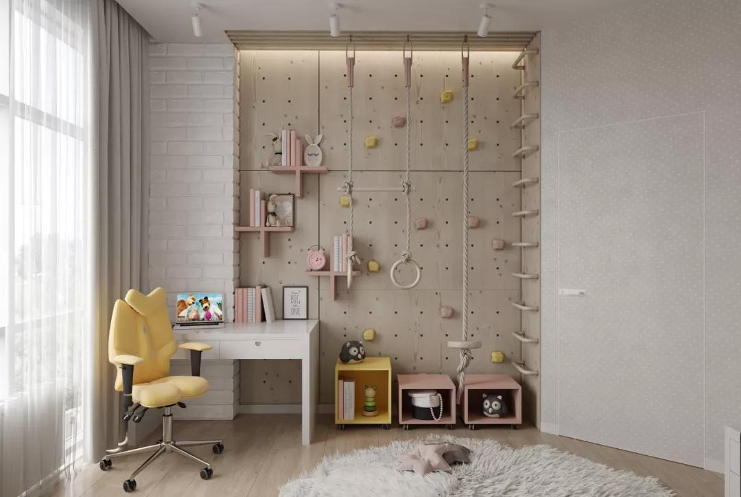 第三,具備玩樂空間。可以在兒童房中設(shè)計黑板墻、帳篷等等,激發(fā)小孩涂鴉的手繪能力,也能提高小孩思維模式和智力。