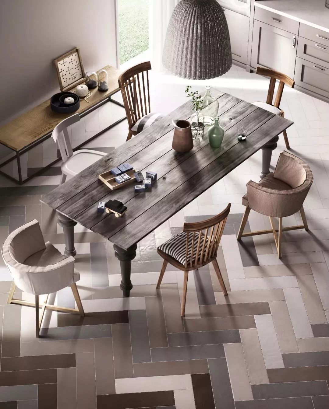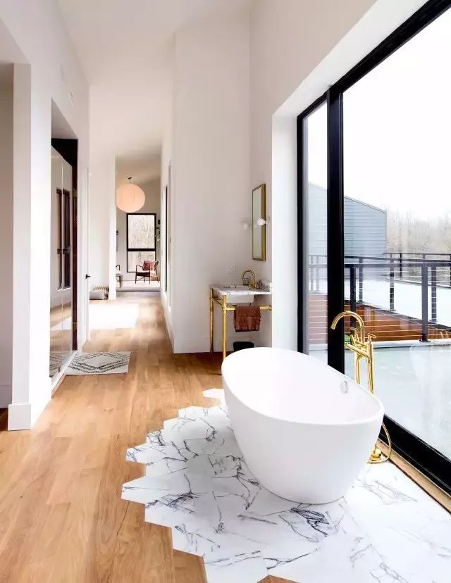 簡(jiǎn)簡(jiǎn)單單的條形磚,鋪貼在地面上形成流動(dòng)的延伸感,營(yíng)造出不一樣的視覺感受。