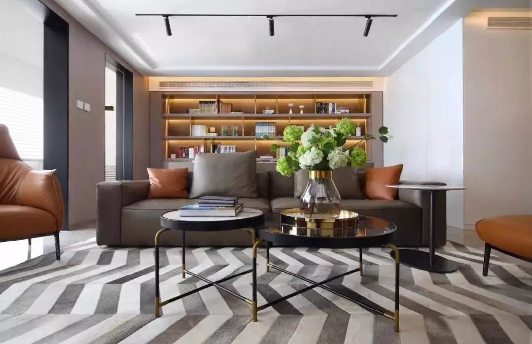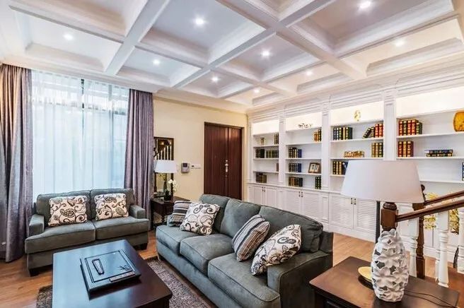 如果空間足夠,可以考慮大面積的書柜為沙發(fā)背景,實(shí)用美觀。