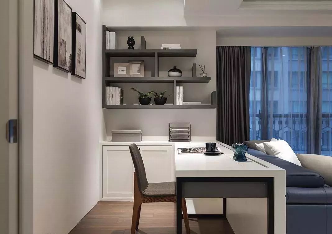 ▲ 書房面積不大深度不夠的話,也可以借側(cè)面墻做書柜。