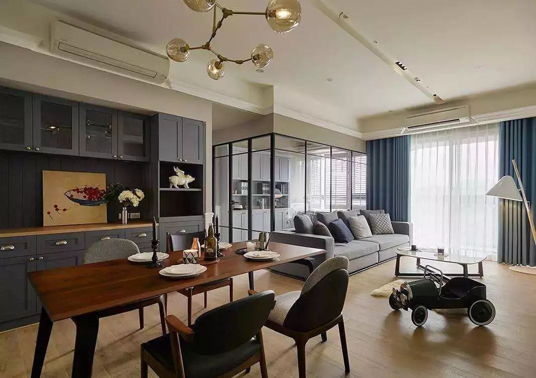 ▲ 在半墻之上采用玻璃門做隔斷,讓空間隔而不斷,玻璃的材質(zhì)又可以讓光線完全照射進(jìn)來。