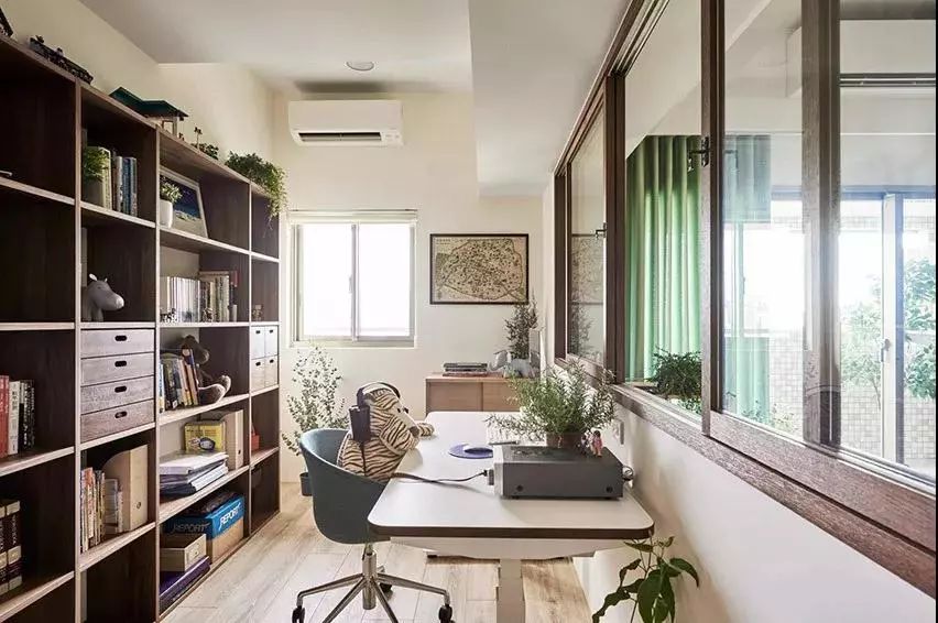 ▲ 半開放式的書房,以玻璃隔斷,又保持了書房的獨(dú)立性,而且也擁有開放式的視覺效果。