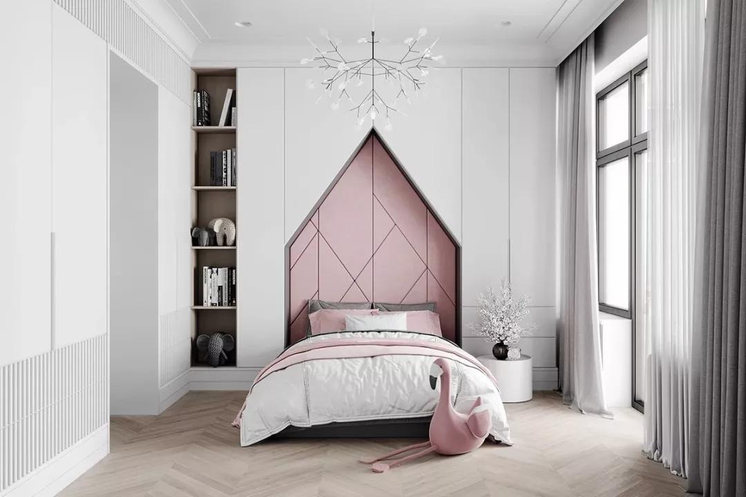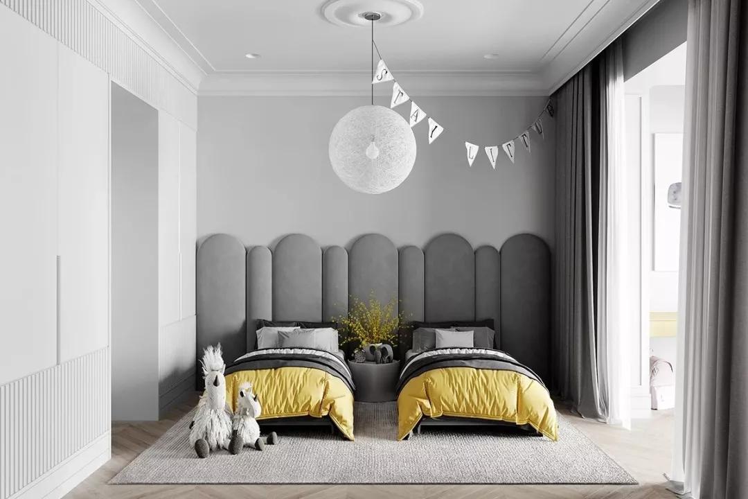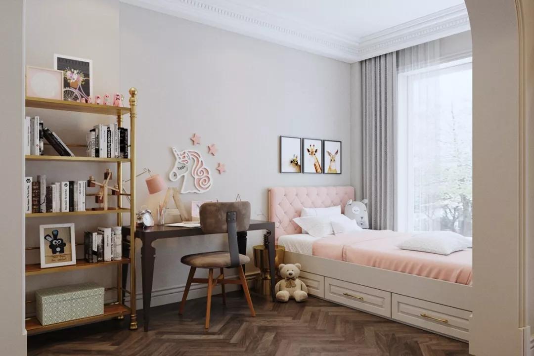 不如墻面選擇中性色或者是飽和度比較低的顏色,就想莫蘭迪色調,加上孩子喜歡的顏色的軟裝點綴一下,這樣才更有利于孩子的成長,看起來也好看了不少。