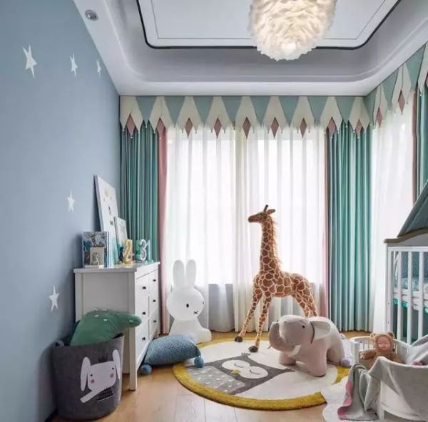 可以在兒童房里加入一些自然元素,比如小星星、云朵、星球、樹木等等;還可以是動物元素,孩子喜歡的小動物;還有幾何元素,各種幾何圖案,更有助于孩子發(fā)揮想象力。
