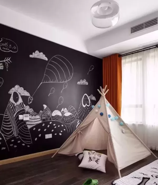 小編覺得兒童房里少不了黑板墻,黑板墻上孩子可以隨意涂鴉,發(fā)揮自己的想象力,而且也不用擔心孩子在白墻或者是地板上亂畫,一舉多得呢。