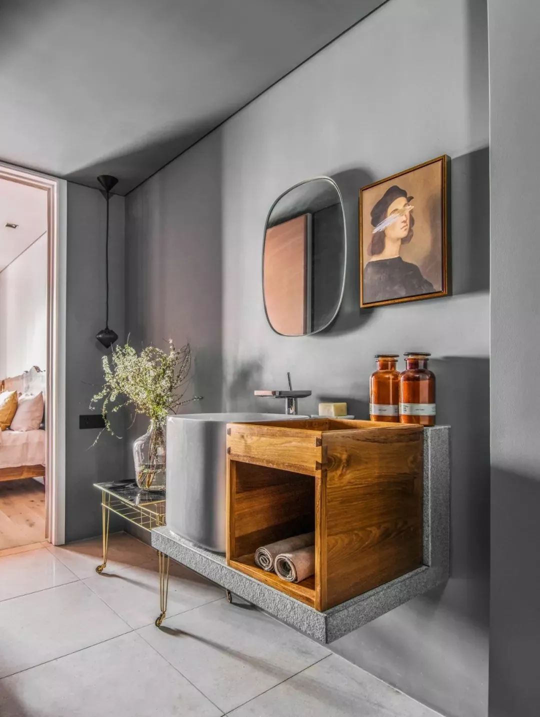 廚衛(wèi)防水,難道只能靠又厚又重的瓷磚?宅Sir之前介紹過的設計師,劉一汀恐怕要第一個說NO。她給屋主設計的衛(wèi)浴間,最特別之處,就在于舍棄了貼瓷磚防水的方式,墻面全部涂刷了英國Mylands的防水漆(包含淋浴濕區(qū)的墻面)。