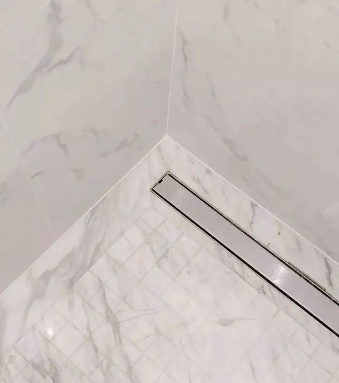 條型地漏面積大,排水快,不容易被頭發(fā)堵塞。而且一般條形地漏的排水坡度只需要1%,而普通地漏的坡度在1.5%-3%,所以從施工上來說,也簡單許多。
