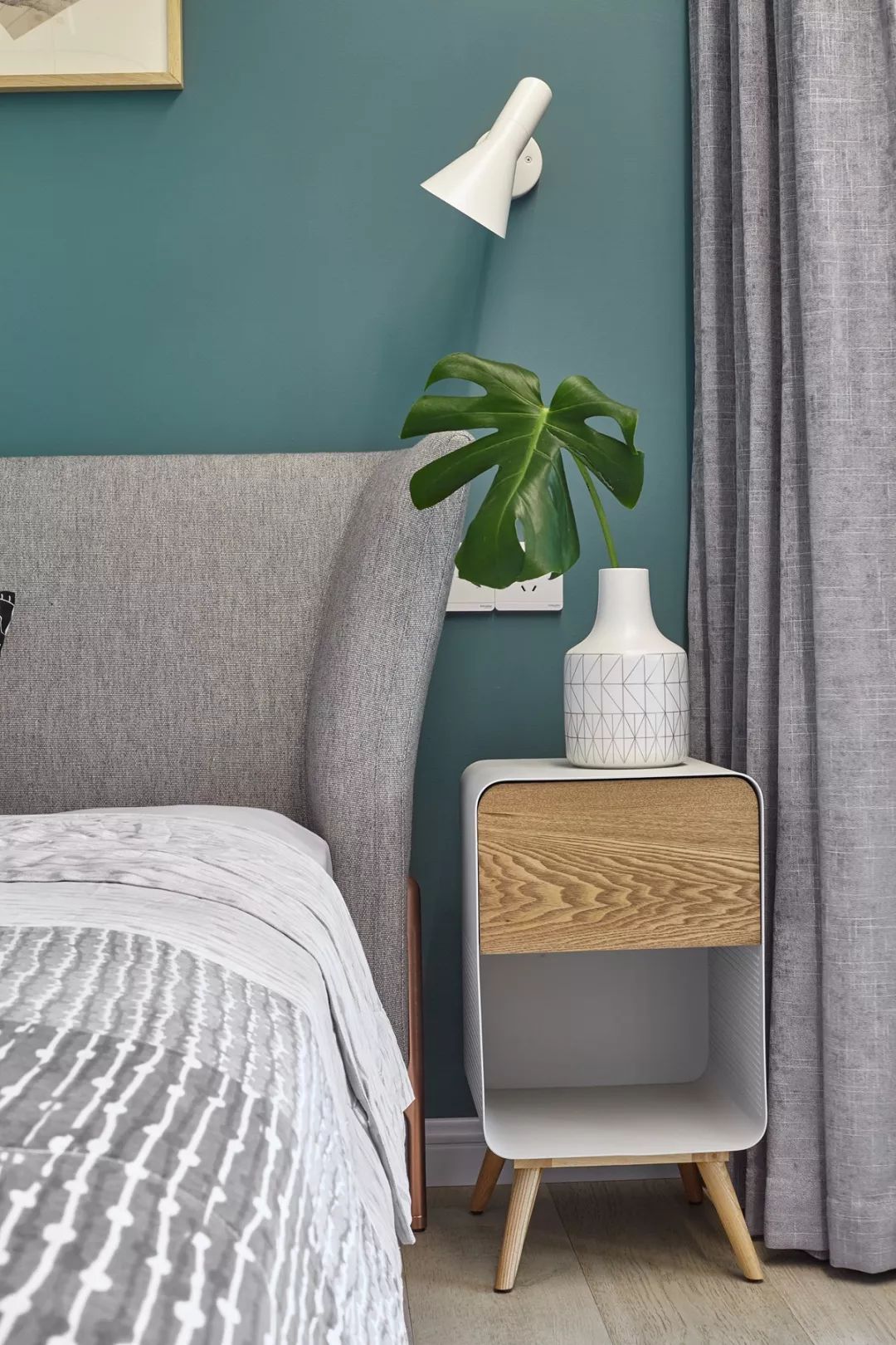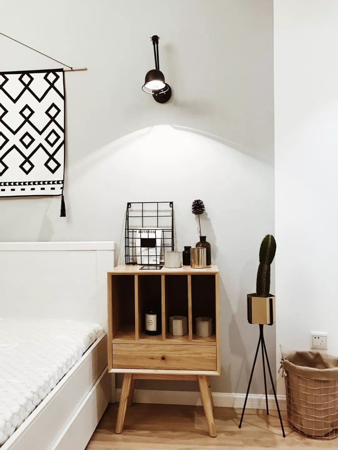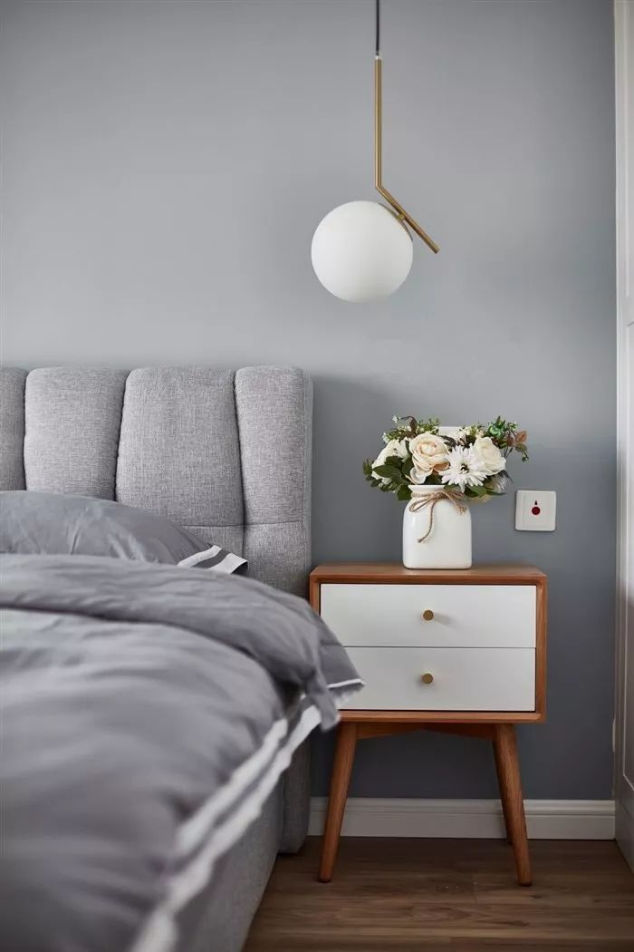 相對(duì)傳統(tǒng)的笨重床頭柜,這樣小巧輕盈的設(shè)計(jì),不占太多的空間,基本的收納完全沒(méi)問(wèn)題。
