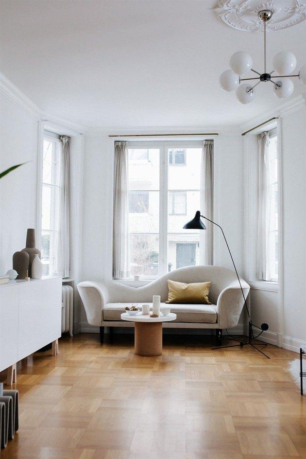 并不是所有人都有足夠的錢來翻新家里所有過時的部分,但不要絕望:用干凈的中性色和稀疏的裝飾搭配起來,你的老式拼花地板(或其他過時的裝飾)會讓人感覺非常精致。