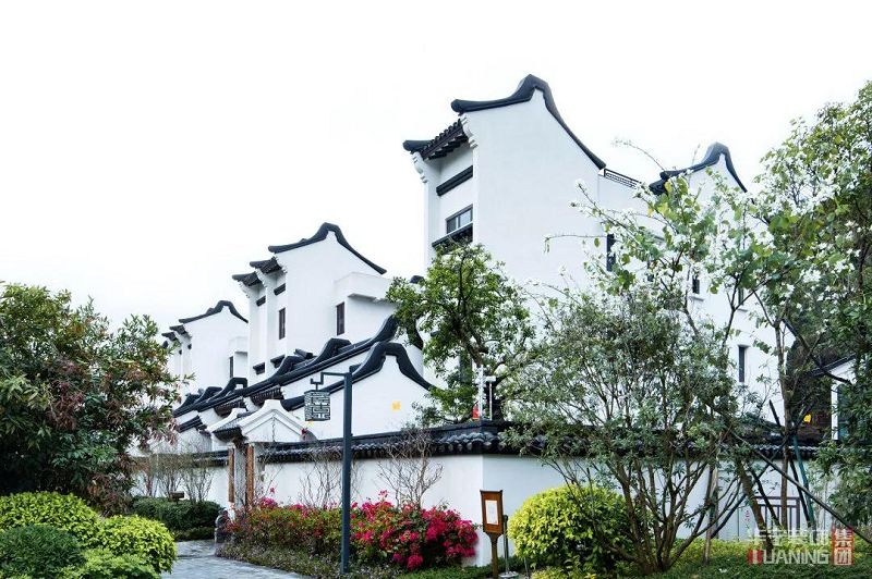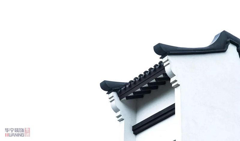 線(xiàn)條極簡(jiǎn)的白墻黛瓦,在青水綠水間勾勒出極富詩(shī)意的畫(huà)卷。建筑黑白分明,臨湖而立,繼承了中國(guó)明清時(shí)期徽派建筑的精髓,黑色長(zhǎng)短的雙坡屋面,以黑色弧形封檐板收頭,在白墻映襯下,宛如中國(guó)水墨畫(huà)中寫(xiě)意的黑色構(gòu)線(xiàn)。