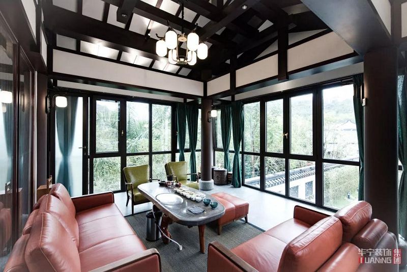 項(xiàng)目介紹 Project description 項(xiàng)目名稱(chēng) | 恬淡歸隱,寄情于山水 項(xiàng)目信息 | 中海湯泉 設(shè)計(jì)機(jī)構(gòu) | 廣東華寧裝飾集團(tuán) 合舍空間設(shè)計(jì)院 設(shè)計(jì)團(tuán)隊(duì) | 合舍設(shè)計(jì)院團(tuán)隊(duì) 項(xiàng)目坐標(biāo) | 中國(guó)·惠州 項(xiàng)目風(fēng)格 | 新中式風(fēng)格 項(xiàng)目類(lèi)型 | 別墅 主要材料 | 玻璃、實(shí)木地板、磚、硬包、墻布、拉絲黑鋼、黑胡桃 竣工時(shí)間 | 2019年初