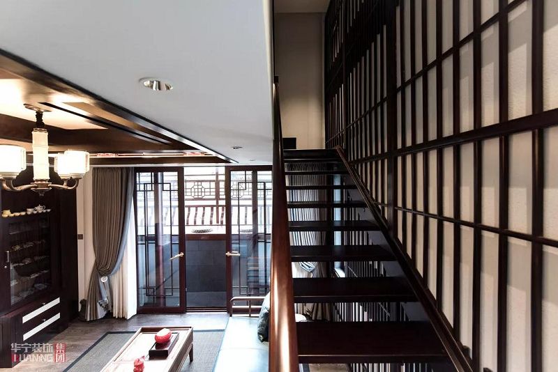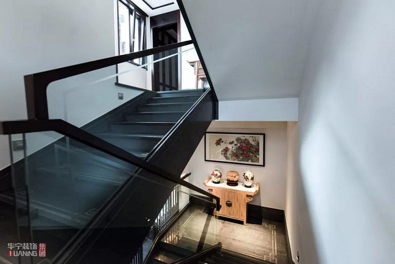 通往二樓的階梯上,銅色的階梯,明亮通透的玻璃扶手,為沉穩(wěn)的階梯帶來(lái)“光明”。樓閣擺放著精美的藝術(shù)品與山間水墨畫(huà),美好恬靜的時(shí)光從階梯走向二樓的那一刻。