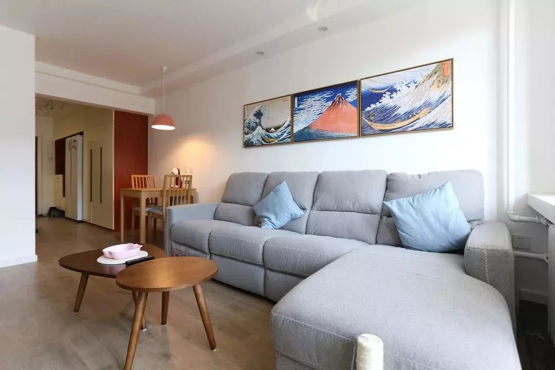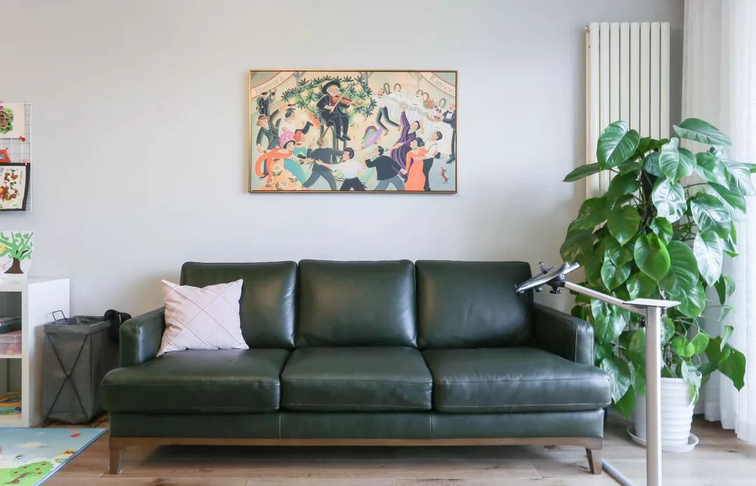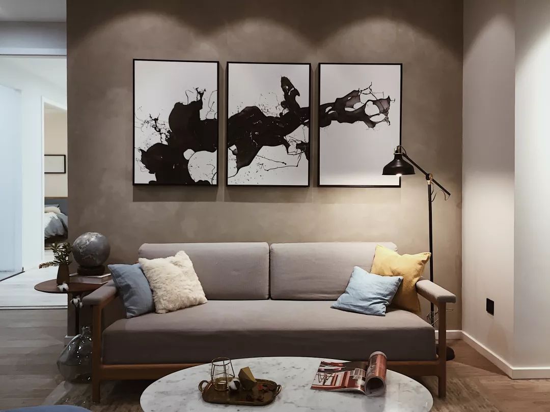 沙發(fā)+柜體+掛畫+墻面, 四重層次,已經有了中產之家的氣質?!?/span>
